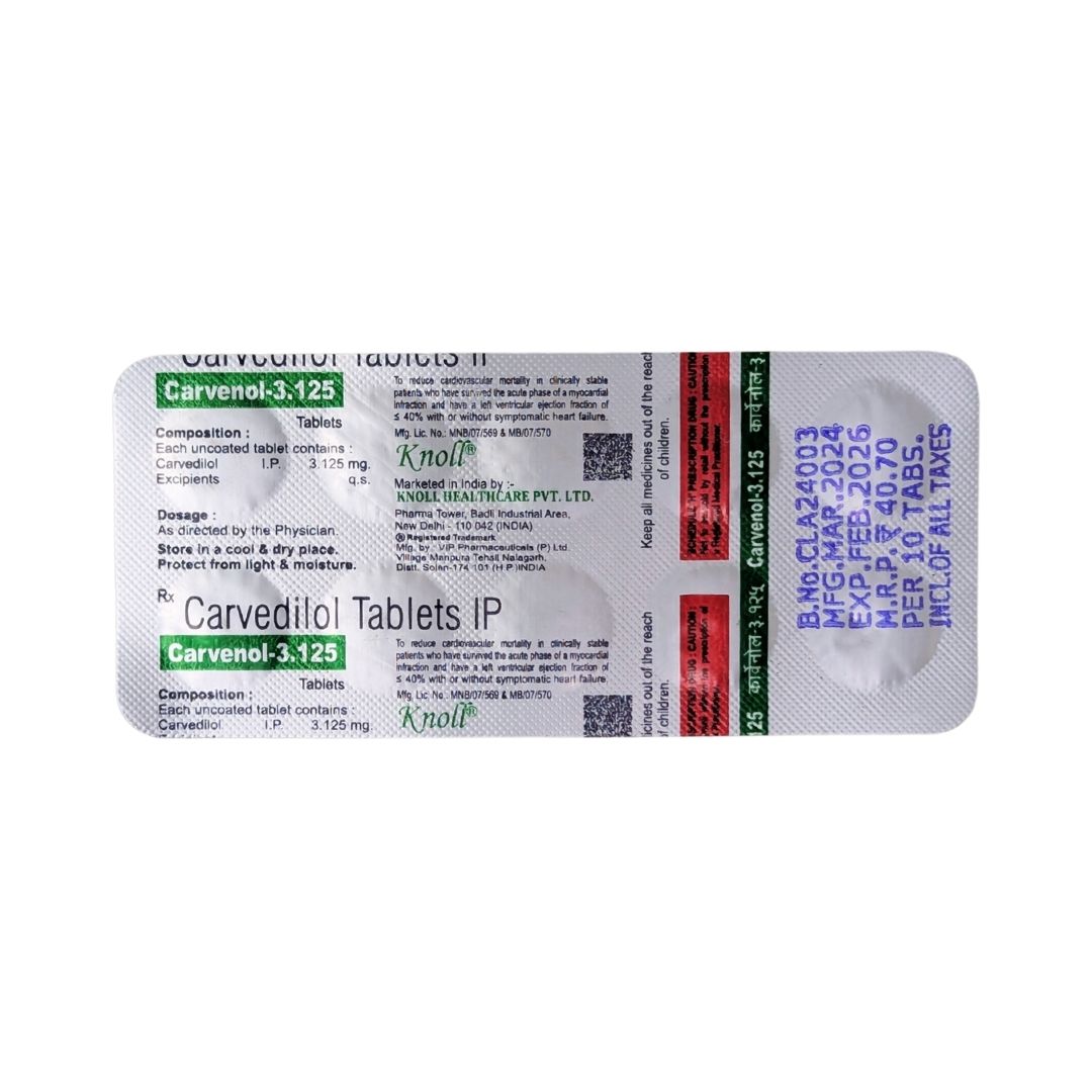 CARVENOL 3.125 - Strip of 10 Carvedilol 3.125 MG Tablets for Hypertension