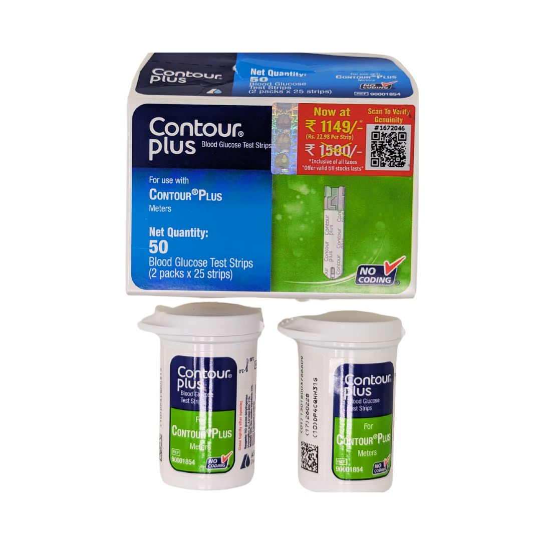 The product composition consists of contour-plus-meters-test-strips-50   The generic alternatives are onetouch  strips,glucosome baro meter strips,dr moropen strips,accusure strips,acc check strips,gluco one strips,element strips,perfect gluco strips,romo check strips,contour ts.