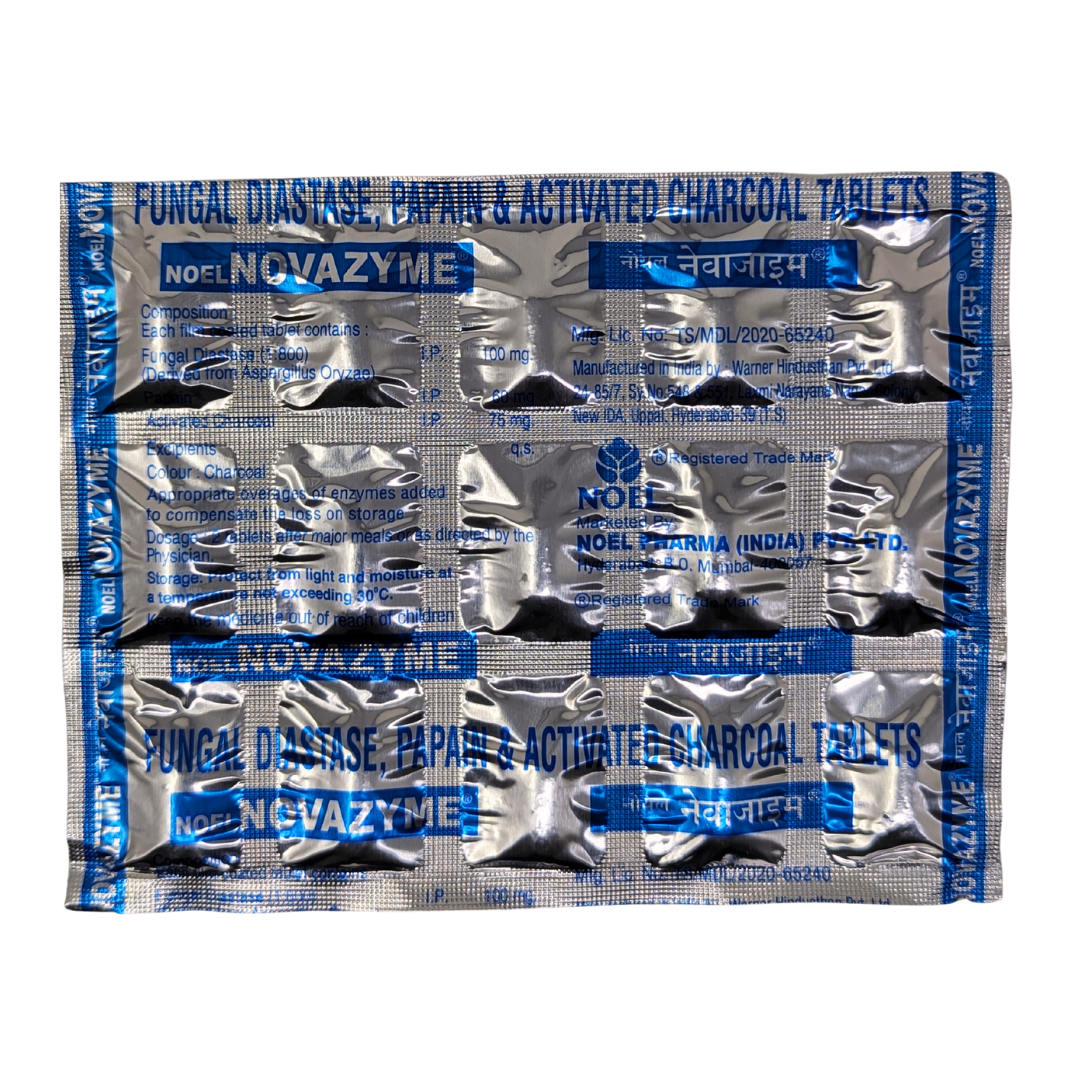The product composition consists of Fungal Diastase 100 mg, Papain 60 mg , Activated Charcoal 75 mg. The generic alternatives are NOVIANZYME TAB,UNIENZYME TAB,CELBIZYME TAB,ETAZYME TAB.