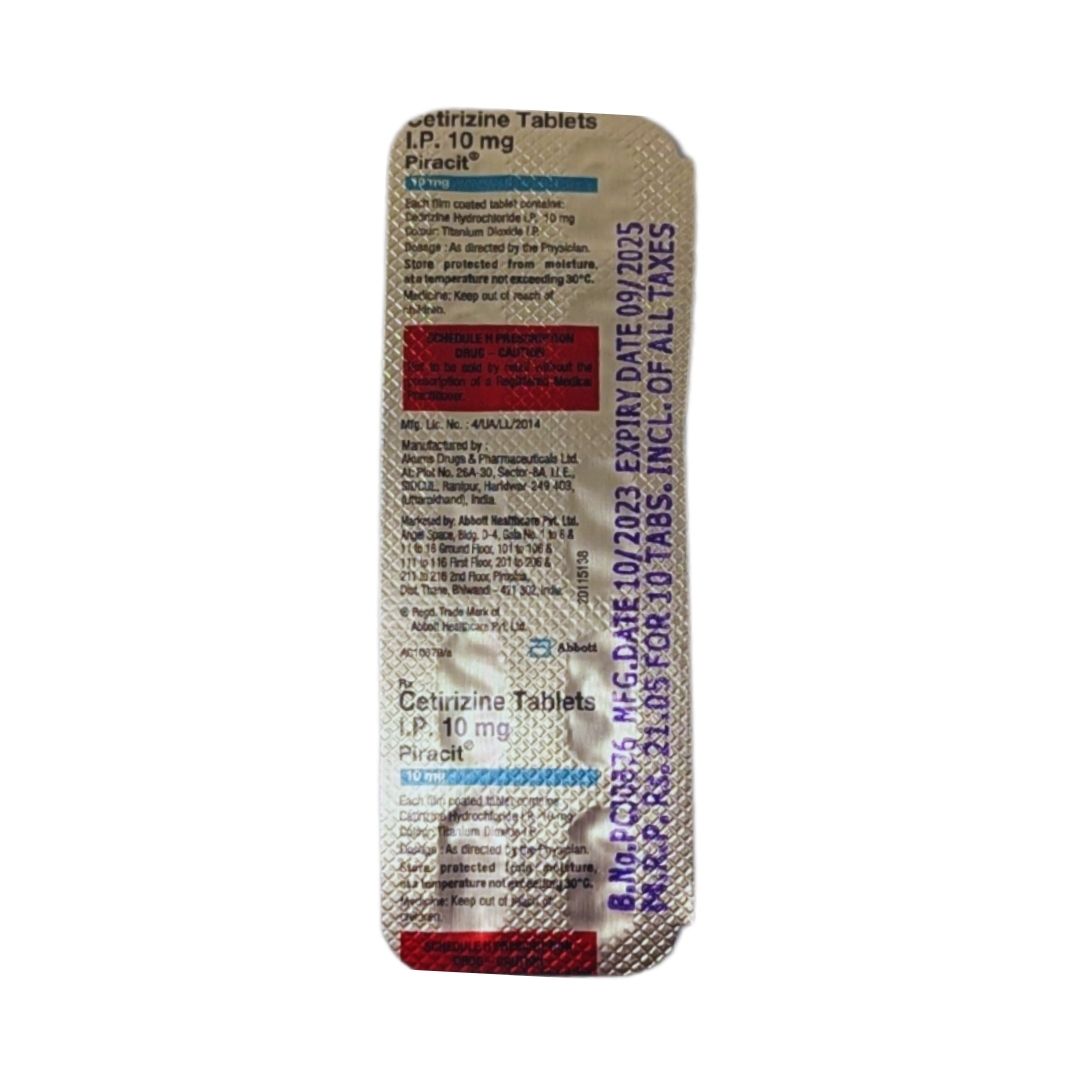 The product is manufactured by Abbott Healthcare Pvt. Ltd. and the composition consists of Cetirizine Hydrochloride IP 10 mg