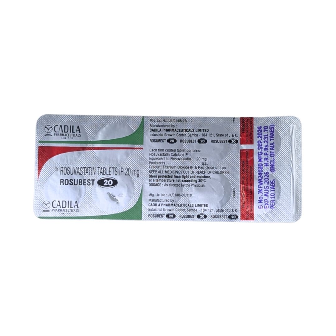 The product is manufactured by CADILA PHARMACEUTICALS LIMITED and the composition consists of Rosuvastatin Calcium 20 mg