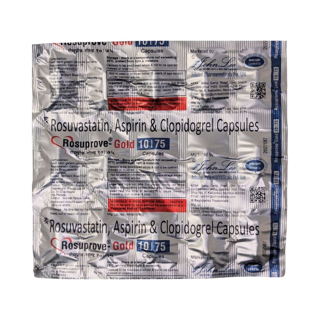 The product composition consists of rosuvastatin 10/aspirin 75/ clopidogrel 75.The generic alternatives are rosumit ac 10,rosu gold 10,rosuneed gold 10,rosowin gold 10,rosusoft gold 10,rubinas gold 10,rosvachem gold 10,rosusin gold 10,rosurun gold 10,rosubest gold,roseday gold.