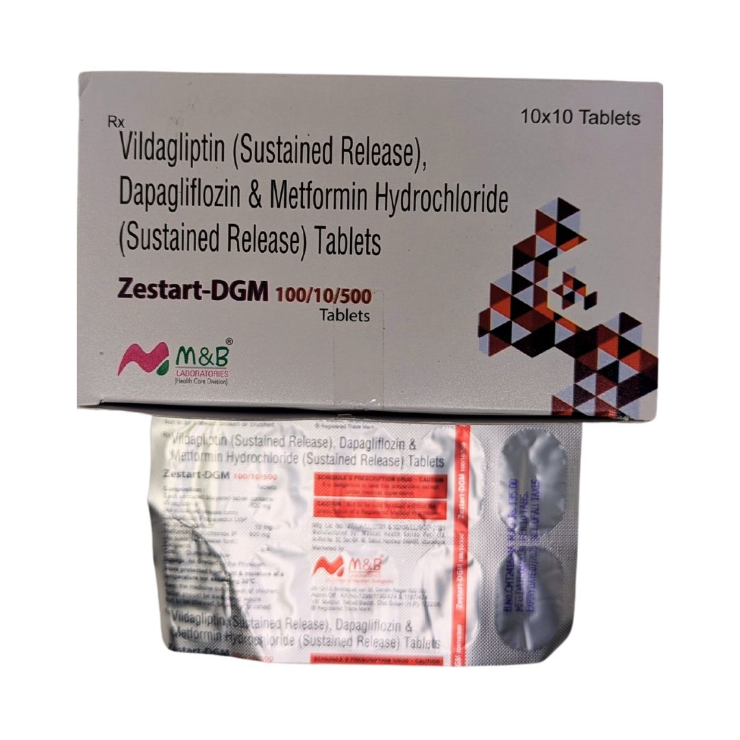 The product composition consists of Vildagliptin 100mg, Dapagliflozin 10mg, and Metformin 500mg..The generic alternatives are vylda dm,vildapride dm,verifica dm,vysov dm,zomelis dm,zavamet dp,gliptagreat dm,vildalist dm 500,daparyl vm,torglip dm,.